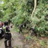 Pohon setinggi 10 meter dan 8 meter, tumbang dan bahkan sempat menutup akses jalan. Tumbangnya pohon itu, terjadi di 2 lokasi berbeda.