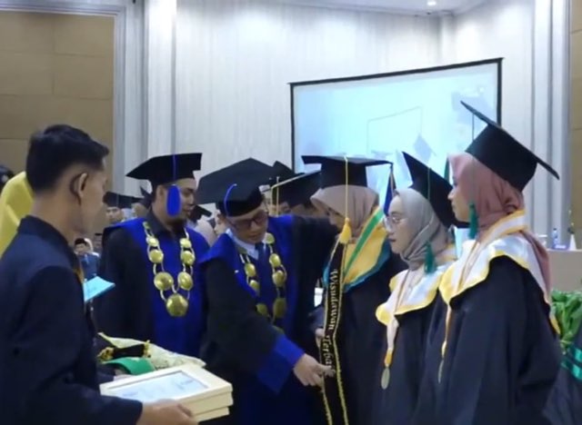 “Selain itu, wisudawan harus positive feeling. Kunci kesuksesan adalah perasaan positif yang dibangun berlandaskan ajaran Al-Quran dan Hadits, senantiasa mengingat Allah SWT, merindukan energy Ilahiyah dan pancaran-pancaran aura positif alam semesta yang terus menaungi, memperkuat ketauhidan, menghindari setiap langkah yang terindikasi mengandung kesyirikan, serta senantiasa melandaskan jiwa tauhid yang kuat pada jiwa akademisi,” pesannya lagi.