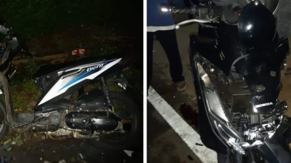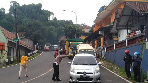 “Tadi ti ditu ge tos oleng a,” ujarnya sembari menunjuk tikungan.