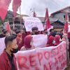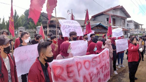 Mereka bergerak dari Uniku dengan long march ke Gedung DPRD Kuningan untuk menuntut penolakan RUU KUHP dan juga Revisi UU KPK