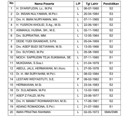 Dari peserta yang lulus, ternyata latar belakang pendidikannya beragam, mulai dari SLTA, S1, S2 sampai S3 alias Doktor. Dikatakan Toni, hasil seleksi administrasi ini menunjukkan tingginya antusiasme sekaligus kualitas pendaftar.