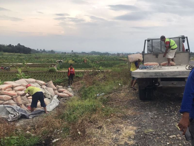 Selain mobil sudah berdiri, terlihat juga beberapa rekan Komarudin, datang dari Ciebon membantu mengangkut semen.