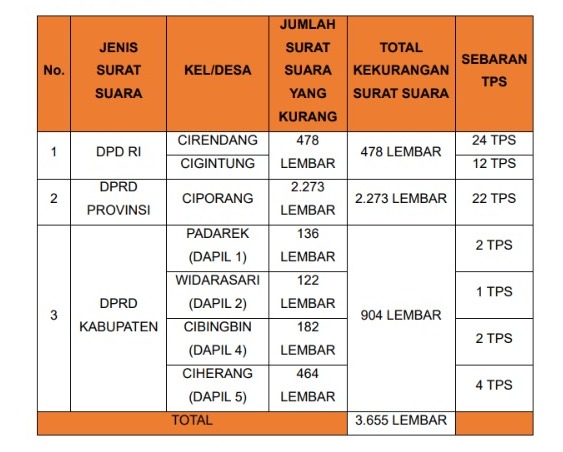 Berikut kekurangan surat suara pasca adanya kerusakan: