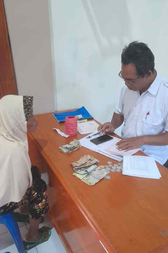 Receh uang logam dan lembaran uang kertas, nampak dibongkar dan dikeluarkan satu persatu serta dihitung dari celengan yang sudah ditandai mereka khusus untuk PBB (Pajak Bumi dan Bangunan).