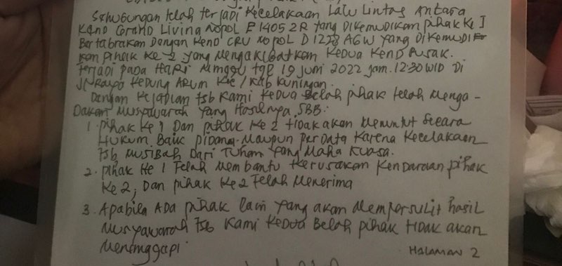 Selain persoalan tidak adanya jalur hukum, disebutkan juga poin kedua tentang membantu pembiayaan kerusakan. Terakhir dibahas soal tidak akan menanggapi pihak lain jika ada yang mempersoalkan.