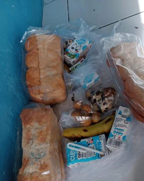 Menu MBG yang dibagikan terdiri dari susu kotak, pisang, telur puyuh, dan roti tawar. Namun, pada roti tawar ditemukan adanya jamur.