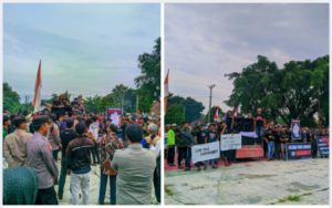 Aksi sendiri diikuti berbagai elemen masyarakat. Nampak pihak aparat keamanan berjaga dalam aksi tersebut. Kepala dan aparat desa, juga menemui ratusan pendemo dan menyampaikan jawab terbuka. (ddn/mgg)