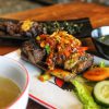 Ada juga Ekado dengan isi ayam telur puyuh dibungkus kulit tahu diikat daun kucai. Lalu Dimsum Nori dengan isi ayam dibungkus kulit nori atau rumput laut.