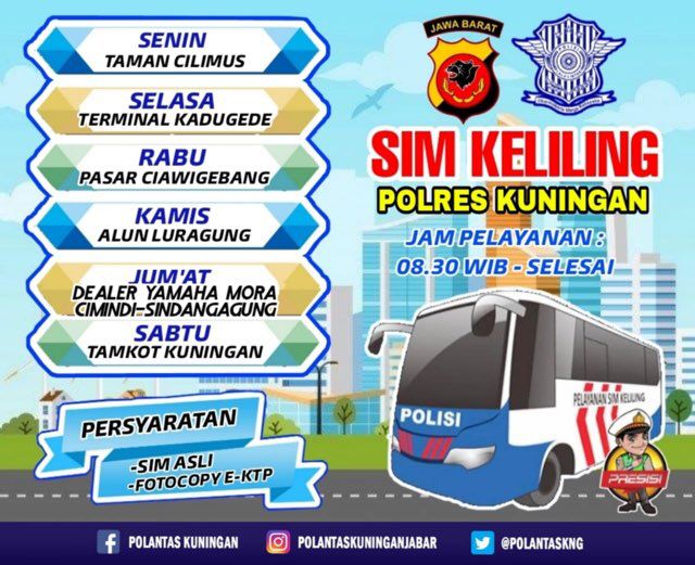 Berikut jadwal layanan SIM Keliling Polres Kuningan :