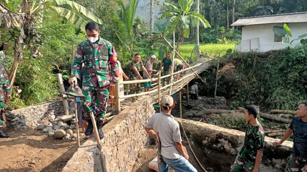 KUNINGAN (MASS) – Pembangunan 1 unit jembatan yang menjadi sasaran fisik program Tentara Manunggal Membangun Desa (TMMD) di Desa Jamberama, Kecamatan Selajambe, Kabupaten Kuningan...