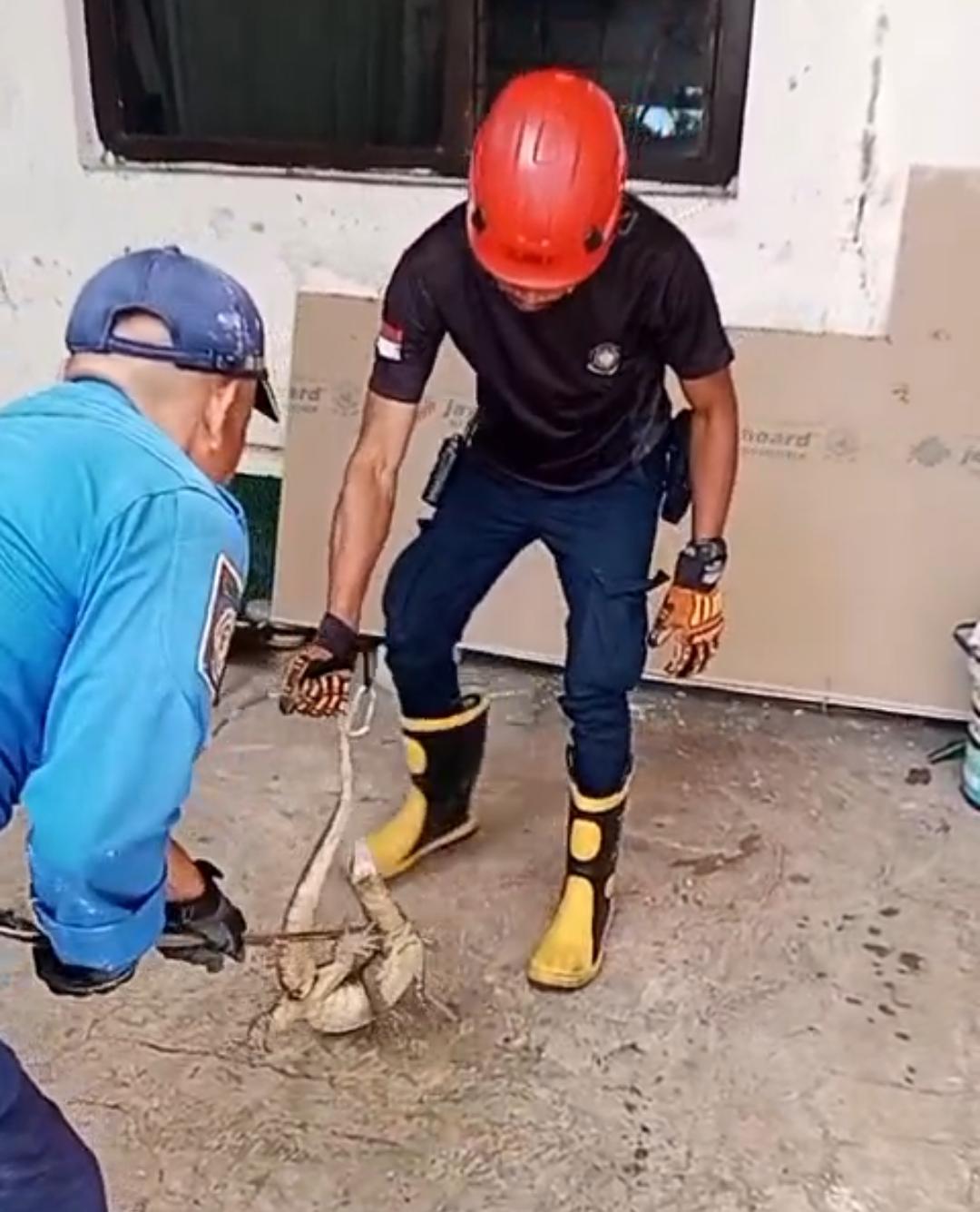 Menindaklanjuti laporan tersebut, petugas Damkar segera menuju lokasi dan melakukan penanganan dengan cepat. Dalam waktu sekitar lima menit, tiga anggota Regu 3 berhasil mengevakuasi satu ekor biawak dari lokasi kejadian.