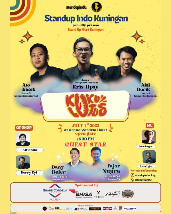 “Acara #Kukulutus ini adalah Standup Nite (SUN) pertama yang diadain di Kuningan. Show yang dulu-dulu selalu sore, ini pertama kali malam,” ujar Fauzy.