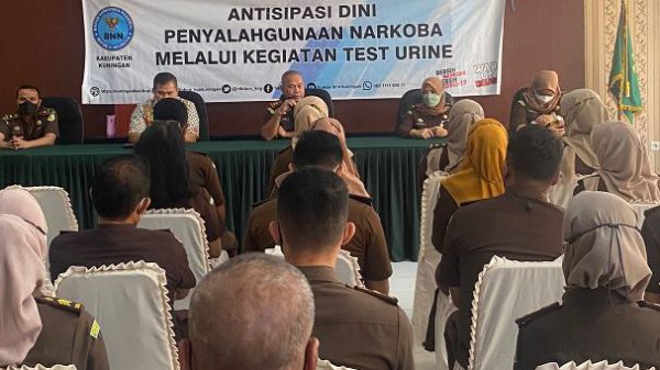 Menyaksikan kegiatan tersebut, Kasi Tindak Pidana Umum (Tipidum) Ikhsan SH MH serta Kasi Pidana Khusus (Pidsus) Haris SH MH serta para pegawai Kejari Kuningan.
