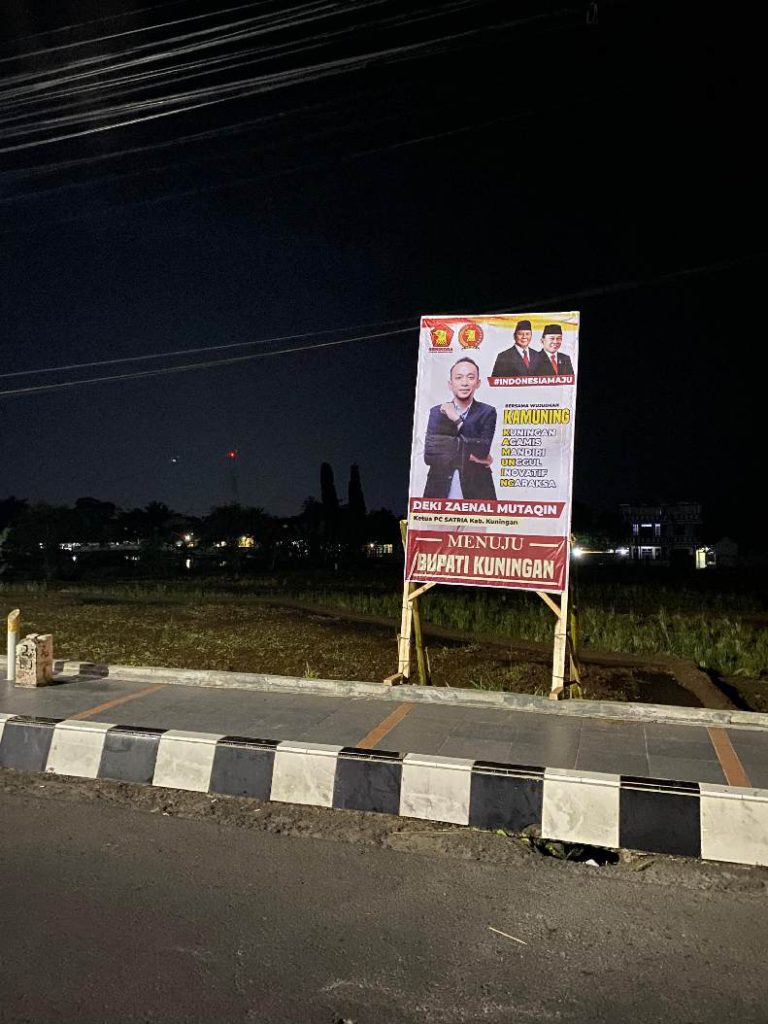 Alat peraga sosialisasi bergambar Prabowo dan logo Garuda, kini mulai marak di jalanan. Dengan tampilan kalem di spanduk, Deki mengucapkan selamat tahun baru Islam 1 Muharam 1446 H kepada seluruh masyarakat Kuningan.