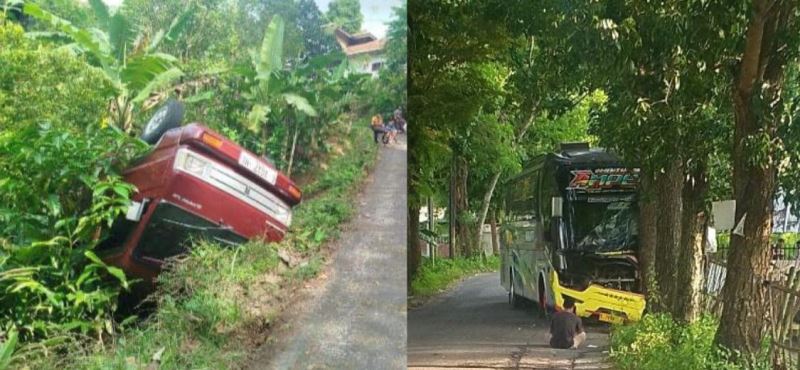 Di Jamberama Mobil Nyusruk, Eh di Jalur Luragung Bus Nabrak Pohon