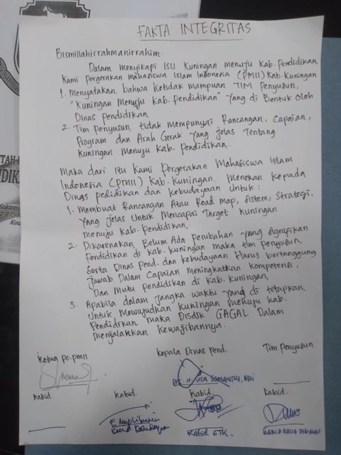 Lebih lanjut, dikatakan PMII, Dinas Pendidikan dan Kebudayaan serta pemerintah tidak serius dalam mewujudkan Kuningan menjadi kabupaten Pendidikan.
