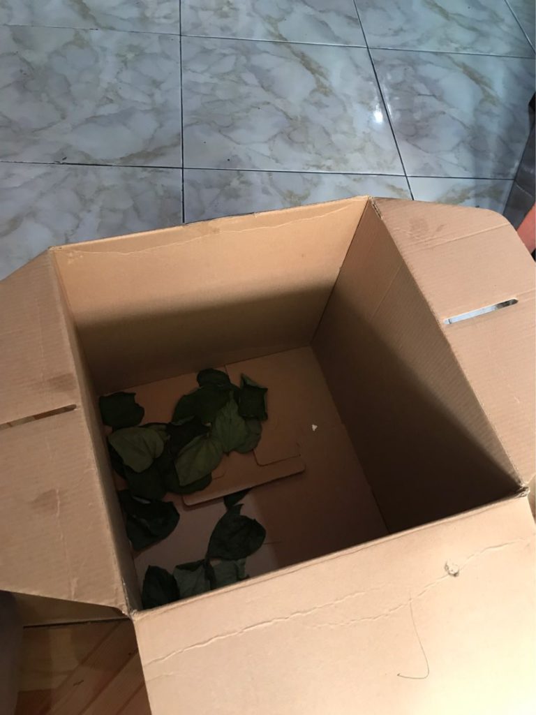 Dedi, dipesankan agar kardus tidak dibuka dulu sebelum lelaki tersebut pergi ke Tasikmalaya membeli darah burung gagak. Kalo dibuka, katanya akan ada malapetaka.