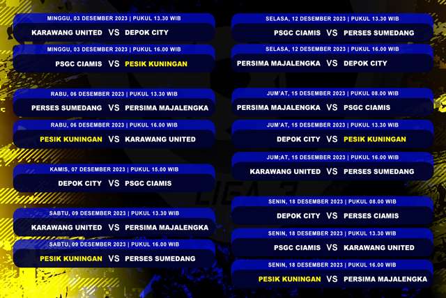 Berikut jadwal grup A Liga 3 Seri 1 Jawa Barat di Stadion Mashud Wisnu Saputra Kuningan: