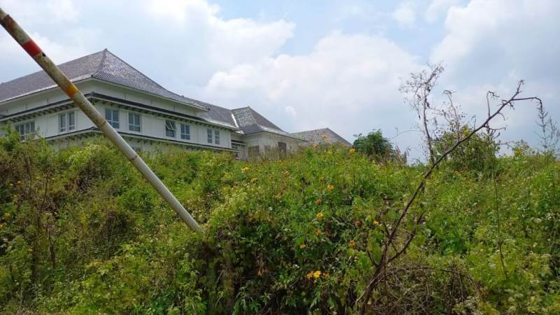 Di sebelahnya ada lagi gedung, tetapi entah gedung untuk apa. Di bagian depannya selain terhalang oleh rumput liar, juga oleh semak belukar yang tinggi, reporter Kuningan Mass sendiri tidak bisa memasuki bagian depannya.