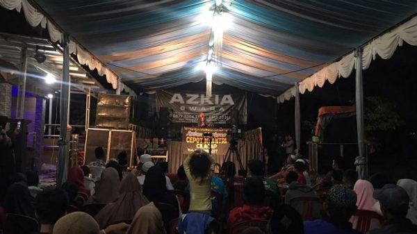 Pagelaran wayang golek yang menyedot ribuan massa tersebut dilangsungkan di Jalan Desa Sukamukti. Hiburan rakyat ini dihelat dalam memeriahkan khitanan Lindan Arya Nugraha, putra salah seorang anggota DPRD asal desa tersebut, Hj Lin Yulyanti SE.