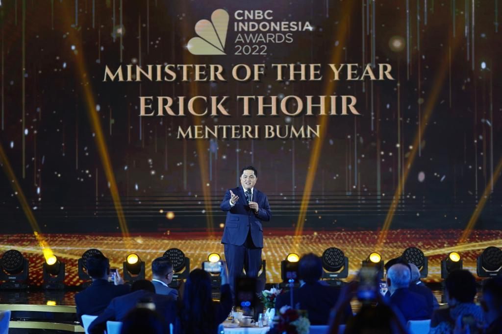 Untuk penghargaan The Best Minister CNBC Indonesia Awards 2022 diberikan kepada Menteri Badan Usaha Milik Negara (BUMN), Erick Thohir. Adapun penghargaan ini diterimanya secara langsung di Hotel ST. Regis, Jakarta, Senin (12/12/2022).