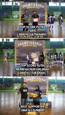 Adapun dalam event tersebut, selain juara 1-3 untuk kategori putra dan putri, ada juga anugerah bagi top score putra dan putri, kemudian ada kategori best supporter.