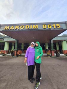 Koordinator Paguyuban Ibu ibu Perum Ciporang, Hj Sri dan Ketua Persit KCK Ny Putri Asih Wiryawan
