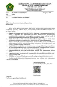 Surat edaran dari Kemenag Korwil Jawa Barat.