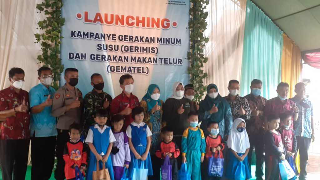 KUNINGAN (MASS) – Dinas Perikanan dan Peternakan Kabupaten Kuningan bersama Tim Penggerak PKK Kabupaten Kuningan melaunching kampanye Gerakan Minum Susu (GERIMIS) dan Gerakan Makan Telur (GEMATEL) dalam rangka mempercepat penurunan dan menekan angka stunting atau kondisi dimana seorang anak memiliki tinggi badan lebih rendah dari standar usianya. Gerakan ini untuk meningkatkan asupan gizi dan protein untuk anak-anak khususnya untuk anak usia PAUD dan RA.
