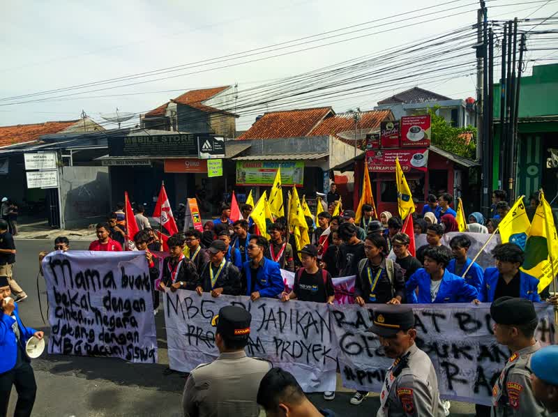 Demo mahasiswa soal pengawasan MBG. (didin sanudin)