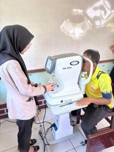 Para pelajar juga didampingi guru dan staff sekitar 10 orang. Mereka diperiksa visus/tajam penglihatan, refraksi objektif, serta diedukasi tentang kesehatan mata.