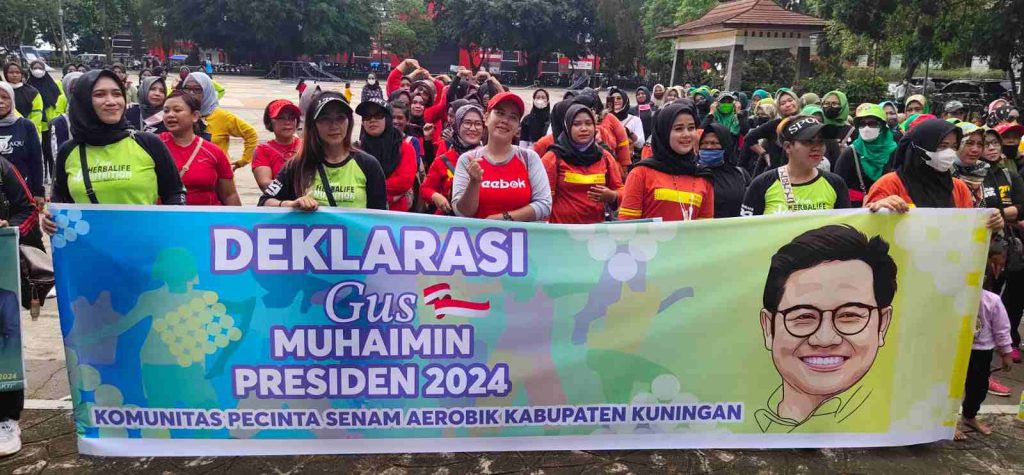 KUNINGAN (MASS) – Tidak disangka, ibu-ibu senam aerobic di Kabupaten Kuningan banyak yang mengidolakan Gus Muhaimin Iskandar. Ketua umum Partai Kebangkitan Bangsa (PKB) penerus Gusdur tersebut digadang-gadang menjadi presiden 2024-2029 kelak.