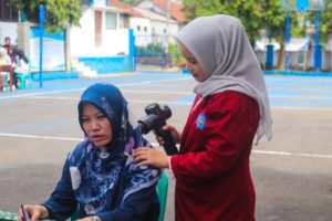FFKS UM Kuningan mengadakan demo fisioterapi di SMK Bakti Indonesia. (Foto: dok UM)