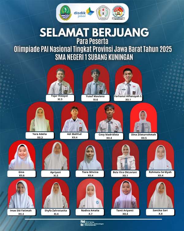 KUNINGAN (MASS) – Sebanyak 17 murid SMAN 1 Subang Lolos Olimpiade PAI Nasional (OLPAIN) ke Tingkat Provinsi Jawa Barat yang dilaksanakan oleh Asosiasi Guru Pendidikan Agama Islam Indonesia (AGPAII) dan Kemenag RI.