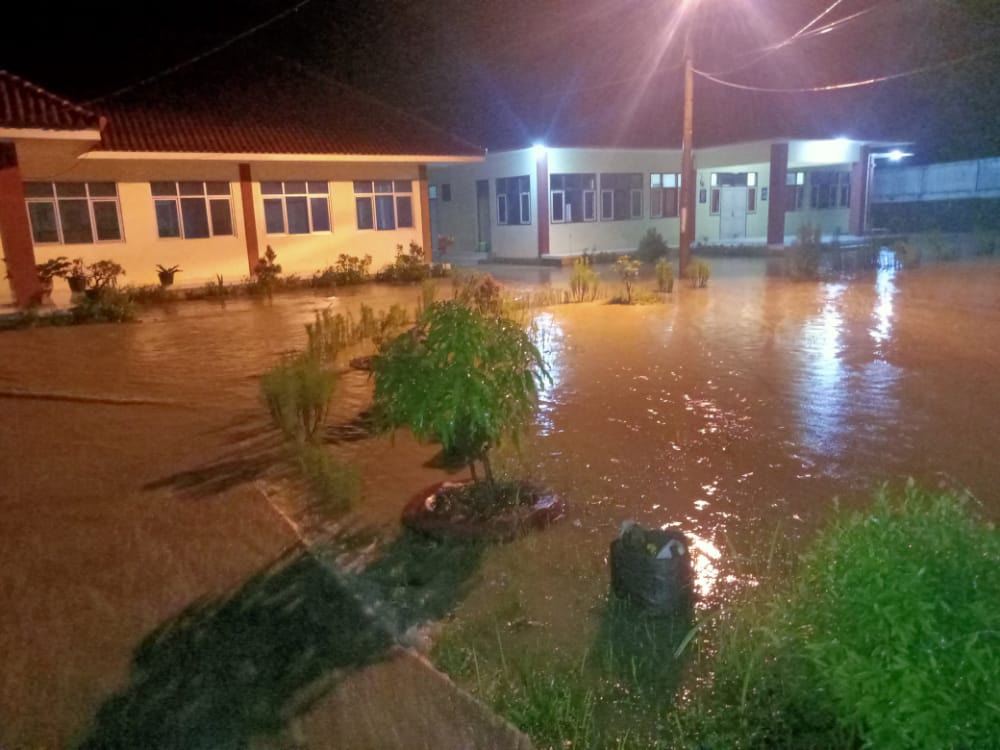 Info sementara ada rumah yang terendam dengan ketinggian air 1 meter. Sempat surut pada pukul 20.00-21.00 WIB, tapi hujan kembali turun sehingga warga kembali was-was.