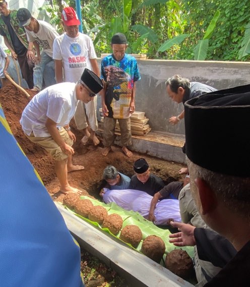 Dengan mata yang merah, tanda duka yang mendalam, Dian bersama keluarga besar, serta kolega, mengantar langsung jenazah sang ayah ke tempat peristirahatan terakhir.