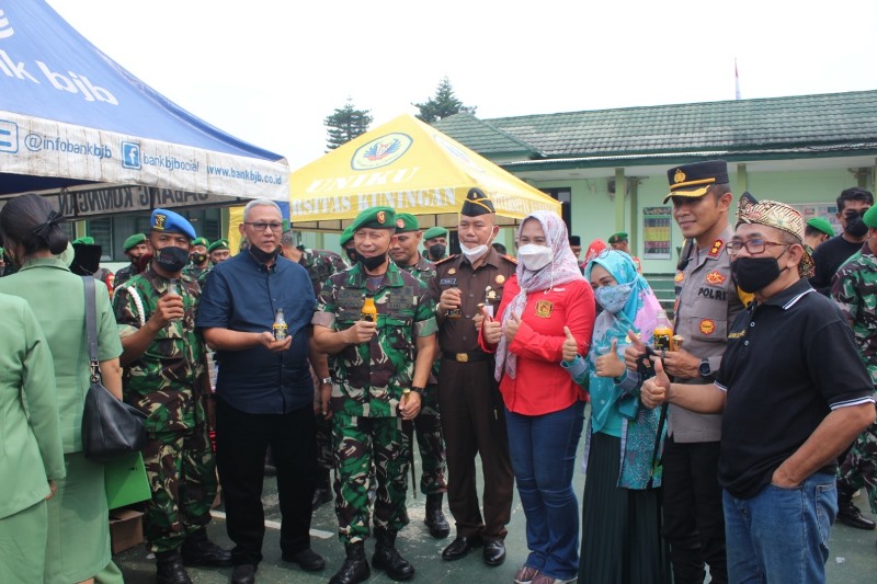 Datang ke Kuningan, selain disambut Dandim Letkol Dzi D Nainggolan, kedatangan Danrem beserta ketua Persit juga diterima langsung Forkopimda Kabupaten Kuningan. Terlihat hadir Bupati H Acep Purnama SH MH didampingi Kapolres AKBP Dany Aryanda, Wakil Ketua DPRD H Ujang Kosasih dan Kajari Dudi Mulya Kusumah SH MM. juga terlihat kepala BPN Kuningan Surahman ST MH.