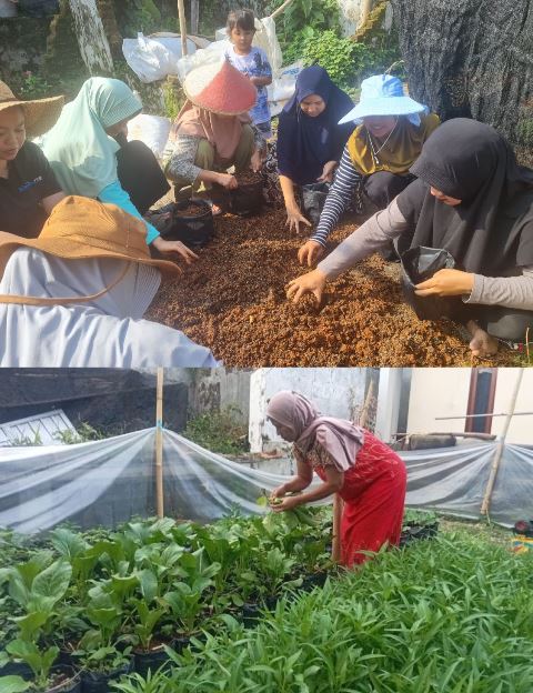 Kader PKK, kader kesehatan berkolaborasi dengan KWT menanam berbagai macam sayuran yang kemudian diberikan pada sasaran.