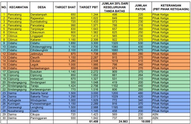“Target 61.408 bidang tanah (tersertifikatkan tahun 2023 di Kabupaten Kuningan),” ujar Kepala Kantah Surahman, sebelum melakukan Gemapatas (Gerakan Masyarakat Pemasangan Tanda Batas), Kamis (2/2/2023) pagi.