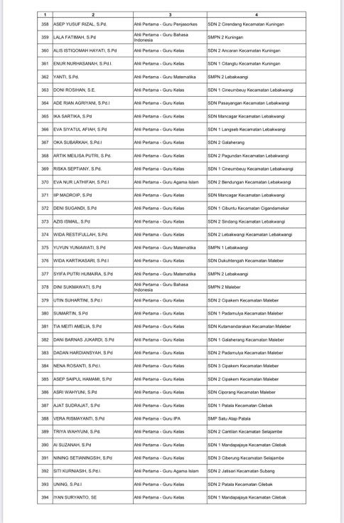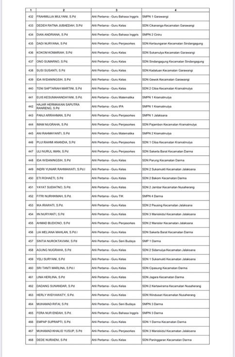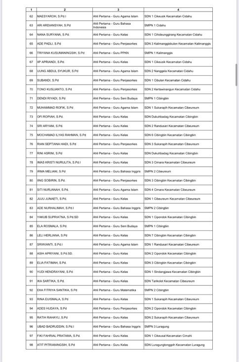 Berikut adalah nama-nama ASN P3K yang dilantik berikut penempatannya :