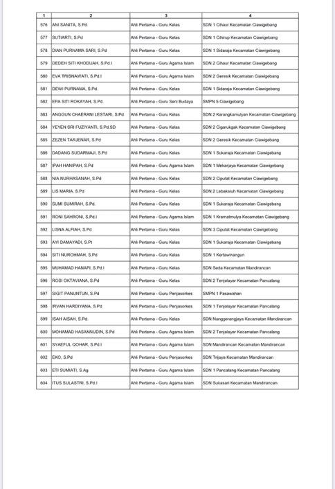 Dari 618 pegawai yang dilantik itu, kebanyakan adalah guru untuk sekolah dasar (SD), baik itu guru kelas, maupun guru mata pelajaran. Meski begitu, tak sedikit pula guru untuk Sekolah Menengah Pertama (SMP).