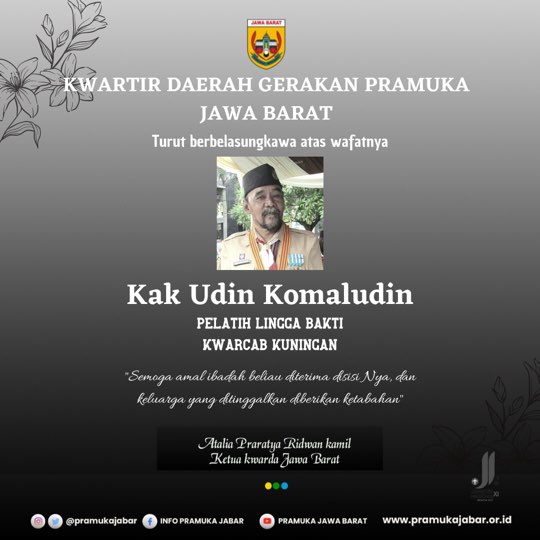 Ditinggalkan Kak Udin, banyak doa mengalir untuk almarhum. Ucapan belasungkawa pun mengalir untuk Kak Udin, Pelatih Lingga Bakti. Ucapan dan doa itu, disampaikan baik itu oleh Kwarcab Kuningan, sampai Ketua Kwarda Jawa Barat Atalia Praratya Ridwan Kamil.