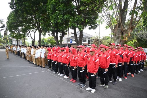 KUNINGAN (MASS) – Bupati Kuningan H Acep Purnama SH MH yang juga menjabat sebagai Ketua Satker Kunci Bersama, melepas kontingen PORSENITAS (Pekan Olahraga Seni Daerah Perbatasan) Kuningan tahun 2023. Acep, melepas kontingan Kuningan berbarengan dengan apel rutin, Senin (5/6/2023) kemarin.
