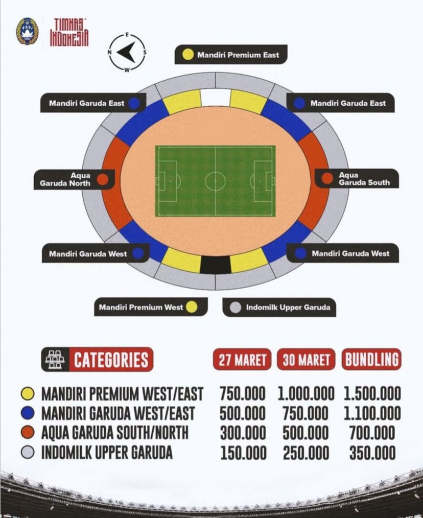 Tiket untuk menyaksikan pertandingan ini sudah mulai dijual dengan harga yang bervariasi. Harga tiket terendah dibanderol mulai dari Rp150.000, sedangkan tiket termahal mencapai Rp750.000, tergantung kategori tempat duduk.