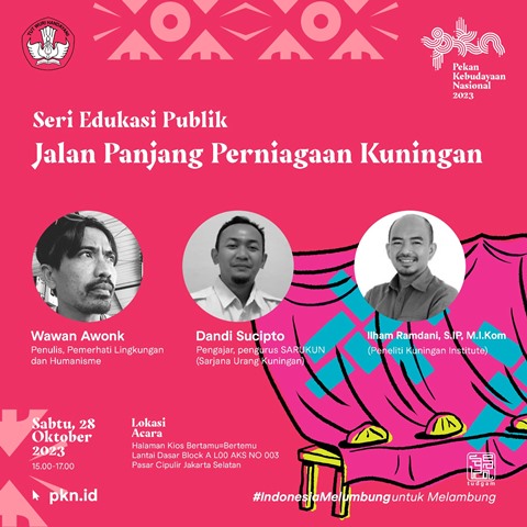 KUNINGAN (MASS) – Jalan Panjang Perniagaan Kuningan menjadi tajuk diskusi yang diangkat Tudgam Kuningan dalam rangkaian program seri edukasi publik Bertamu=Bertemu Bubur Katjang Hidjau Ketan Hitam Kuningan dalam pameran Ruang Tamu PKN (Pekan Kebudayaan Nasional) 2023 yang telah berlangsung sejak 20-29 Oktober 2023 di Pasar Jaya Cipulir Jakarta Selatan.