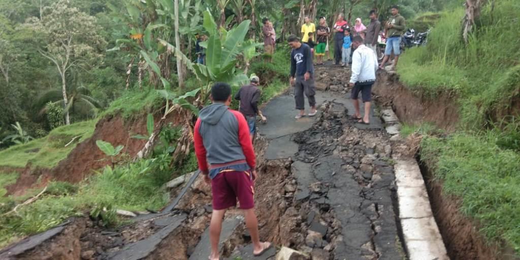 “Jalan amblas 50cm, sawah dan balong longsor rata. Kejadian ini mengganggu siswa sekolah dan aktivitas kerja. Sekitar 200kk terisolir,” sebut Kadus Manis Pamulihan Sunandar, melalui warganya Iwan.