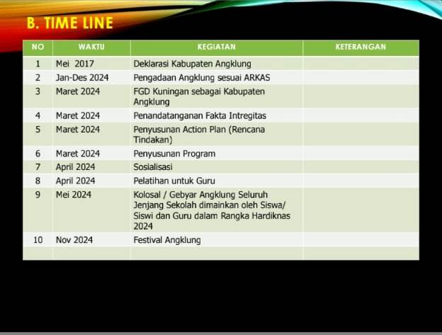 Time line Kabupaten Angklung adalah sebagai berikut: