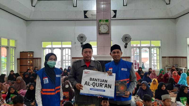 Penyaluran Alquran sendiri, diberikan pada 200 santri penghafal Alquran, tahfidz, di Masjid Al-Huda Yayasan Miftahul Huda, Desa Sukarapih Kecamatan Cibeureum.
