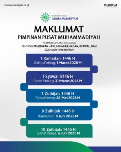 Dilansir dari laman resmi Muhammadiyah pada Rabu, (12/2/2025), dalam maklumat resmi yang dikeluarkan Pimpinan Pusat Muhammadiyah dengan Nomor 1/MLM/I.0/E/2025, disebutkan bahwa ijtimak jelang Ramadan 1446 H terjadi pada Jumat, (28/2/2025), pukul 07:46:49 WIB. Pada saat matahari terbenam di seluruh wilayah Indonesia, hilal telah wujud di atas ufuk, sehingga secara hisab, 1 Ramadan 1446 H ditetapkan jatuh pada Sabtu (1/3/2025).