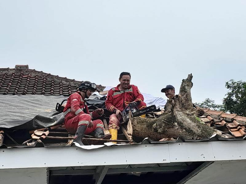 KUNINGAN (MASS) – Pohon mangga setinggi 15 meter dengan diameter 1,5 meter robih menimpa bangunan KUA Lebakwangi, Senin (30/1/2023) sekitar pukul 15.30 WIB.